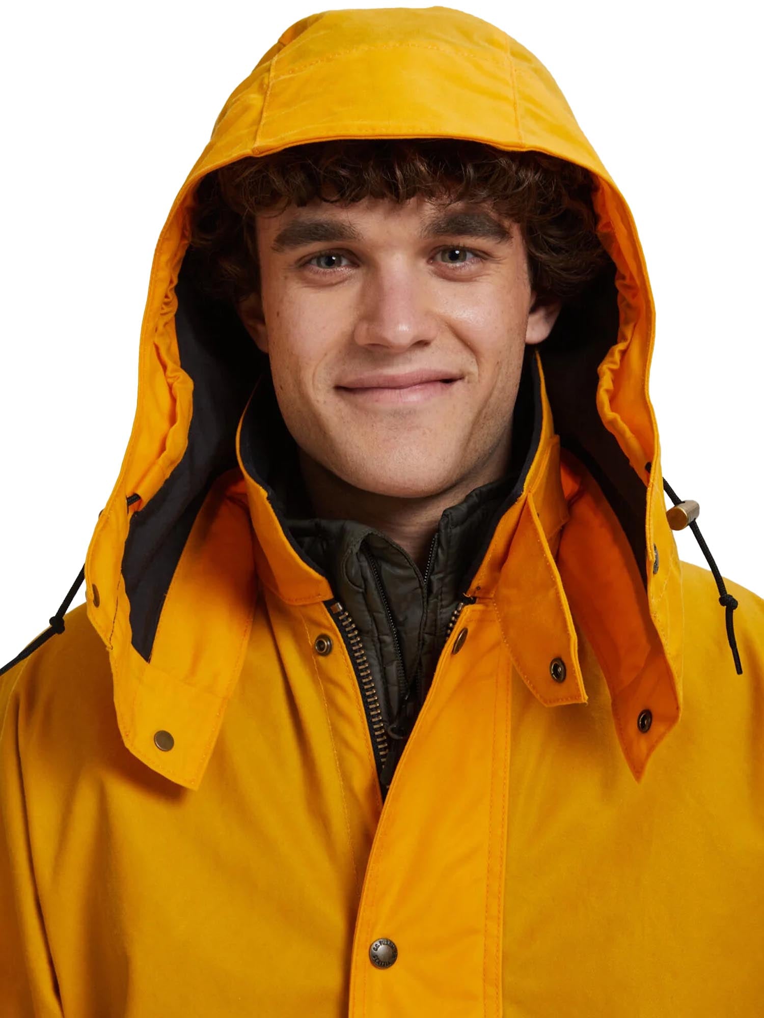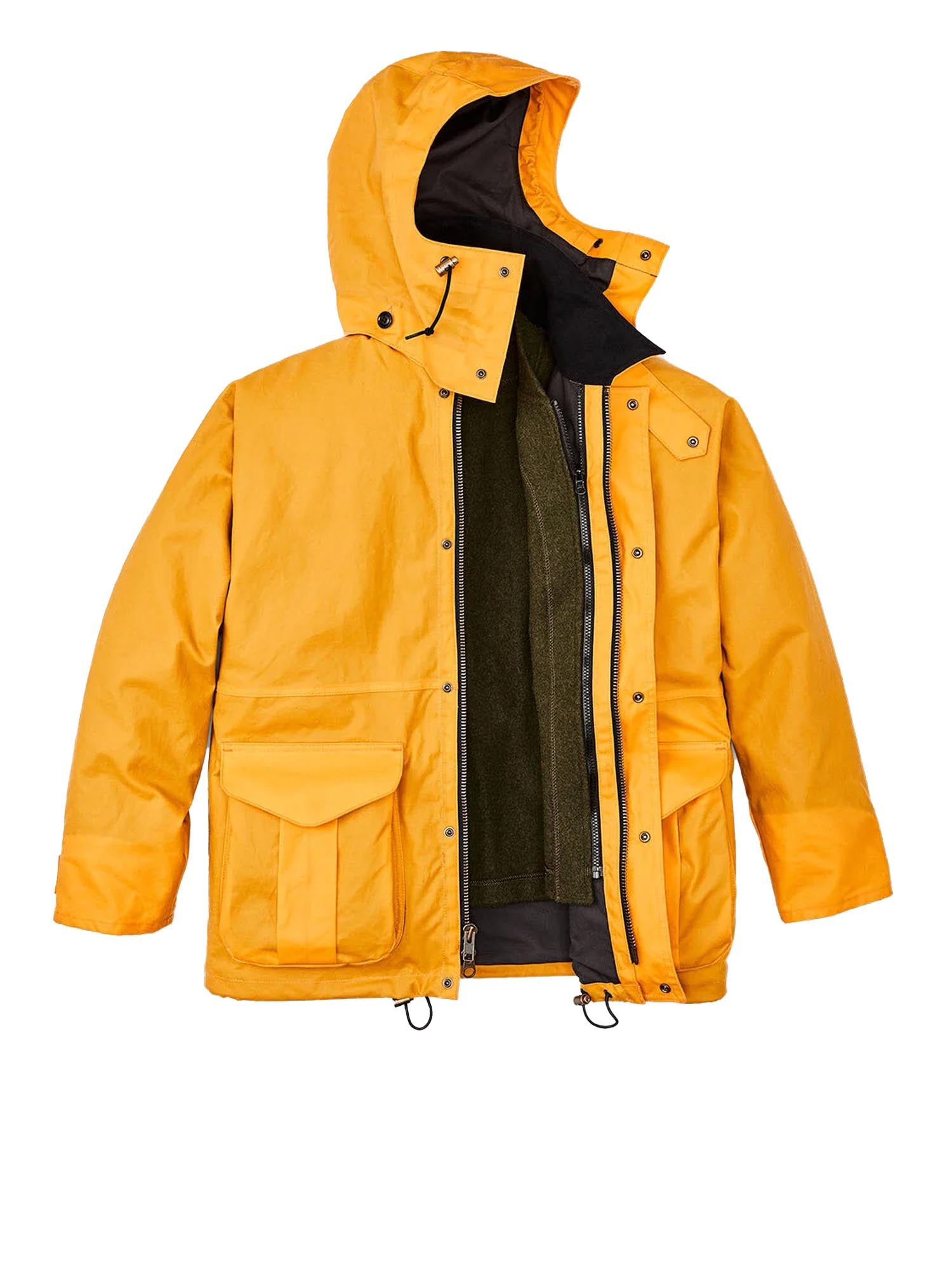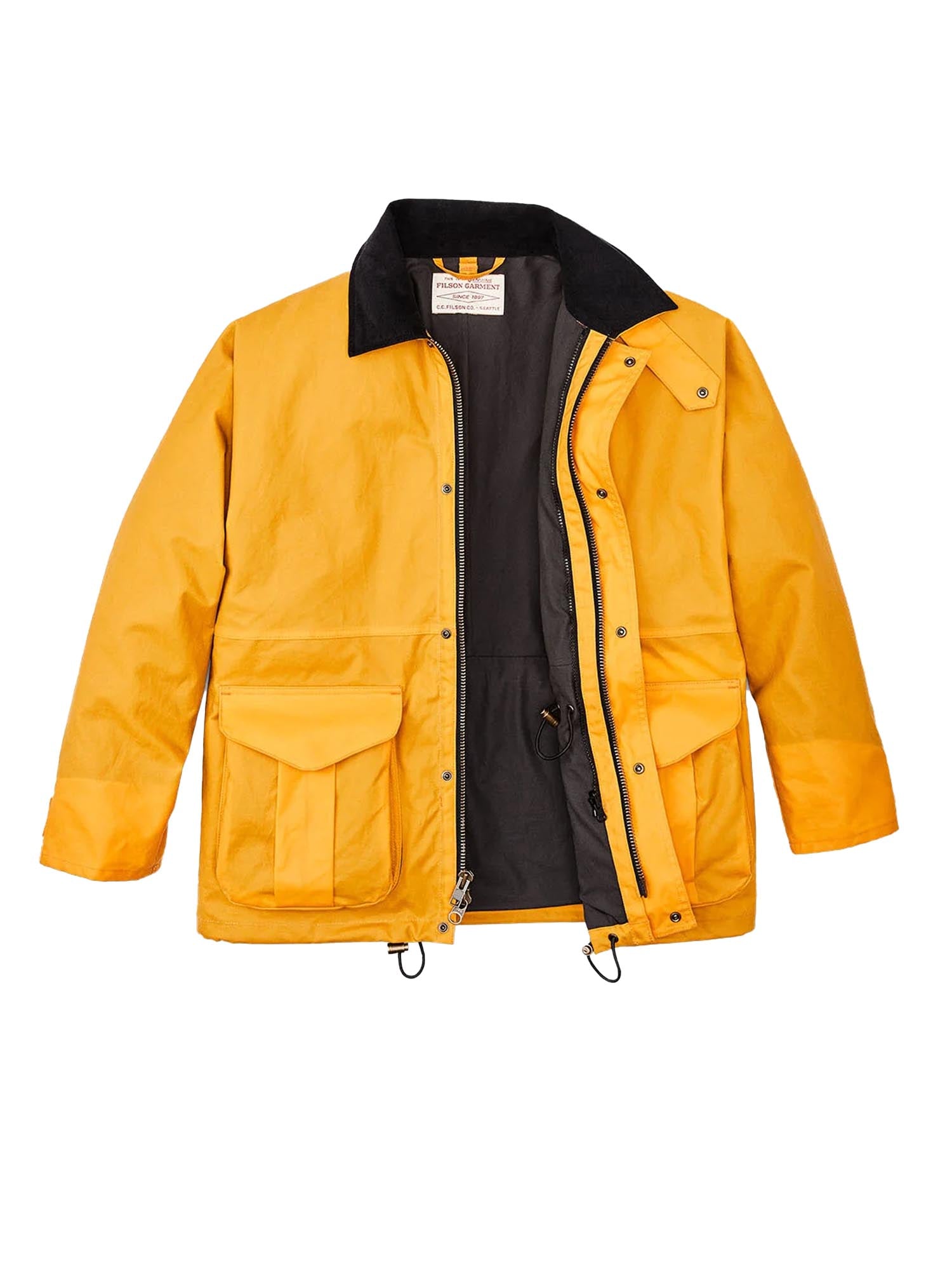 Giacca impermeabile Filson Foul Weather in cotone cerato, realizzata con una struttura monoblocco sulle spalle per eliminare le cuciture e garantire la massima protezione dall'acqua.