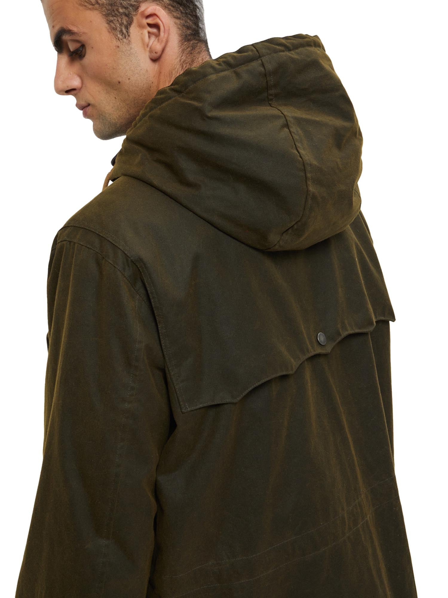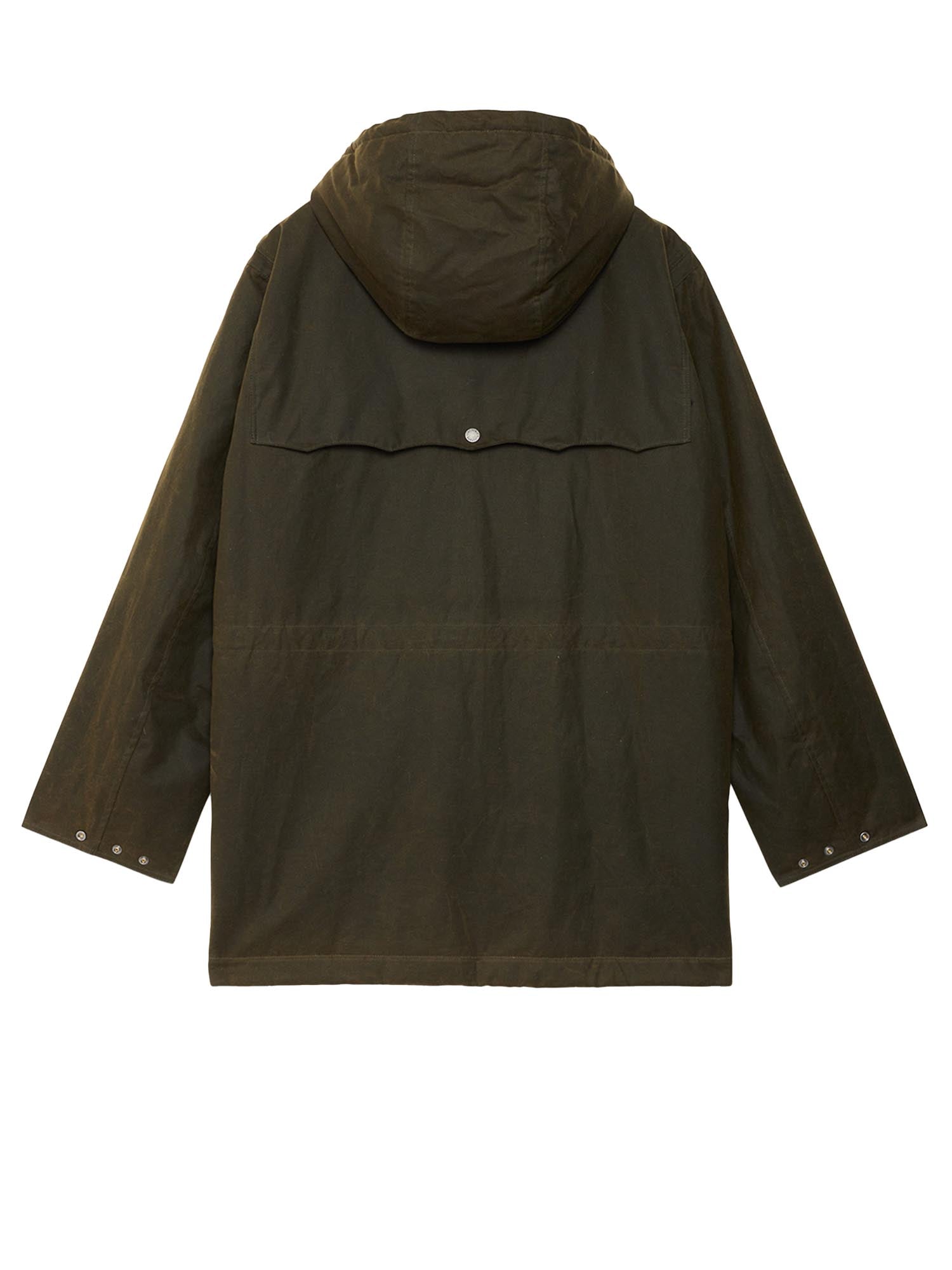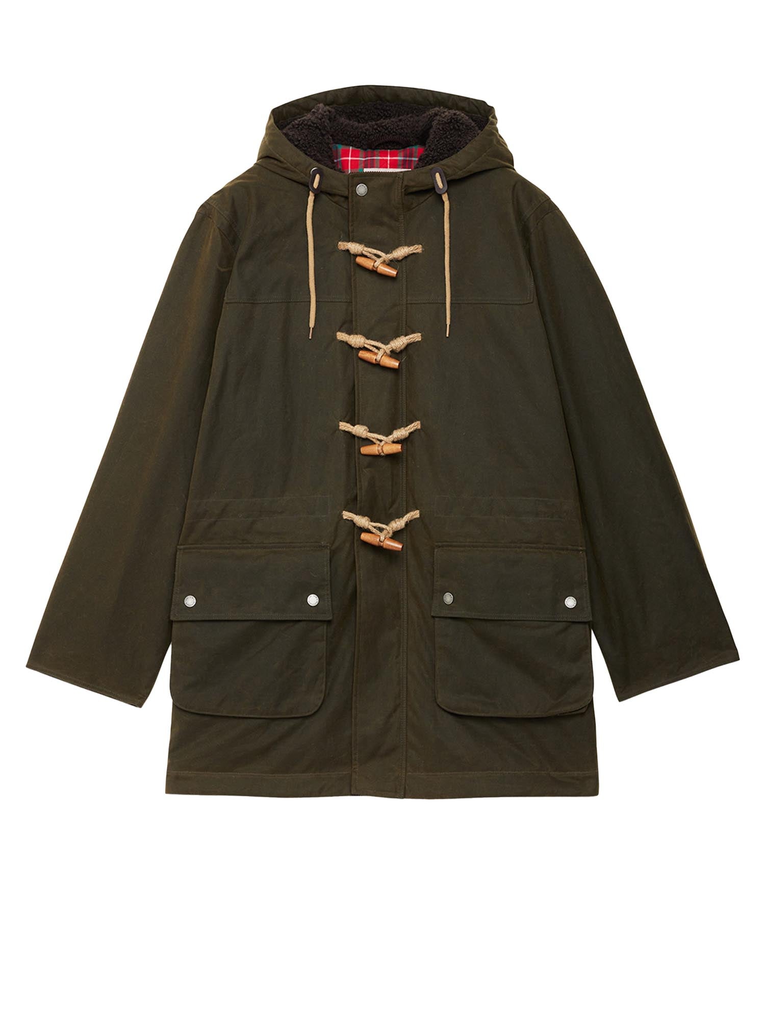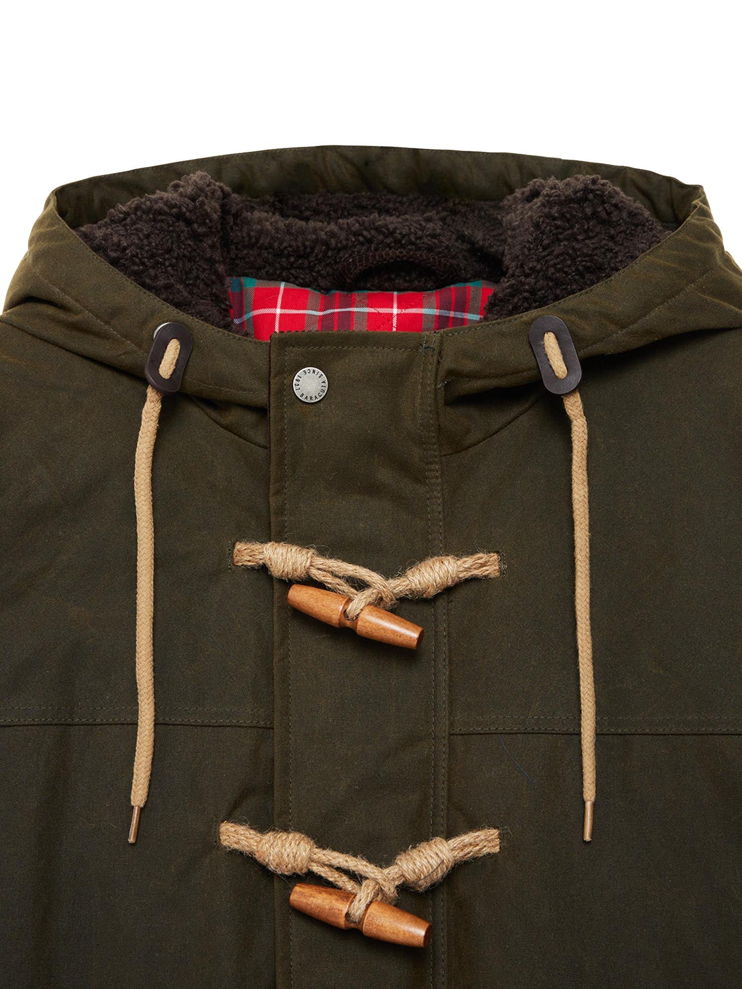 Giacca cerata Baracuta Waxed Duffle Coat realizzata in 100% cotone cerato British Millerain idrorepellente e duraturo.